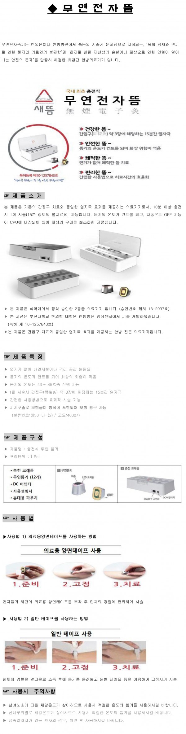 무연전자뜸 "새뜸"의 제품설명소개서 입니다.